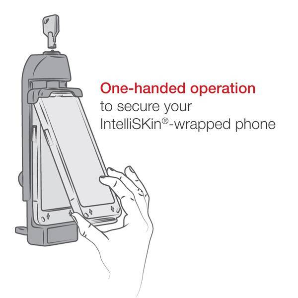 - Регулируемая верхняя чашка подойдет для телефона любого размера, покрытого материалом IntelliSkin®.