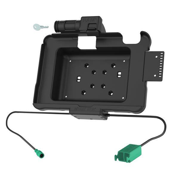 Автомобильная док-станция GDS для планшетов Zebra серии ET5x с диагональю 10,1 дюйма, оснащенная технологией GDS для передачи данных и зарядки, а также замком с ключом для защиты от кражи, позволяет подключать до двух нужных периферийных устройств, сохраняя при этом зарядку устройства через штыревые контакты, когда устройство находится в рабочем состоянии. Питание осуществляется путем подключения к разъему постоянного тока 5,5 мм док-станции, а поддержка периферийных устройств обеспечивается встроенным двойным кабелем USB типа A. Док-станция также позволяет использовать функцию сканирования планшетов через вырез на задней панели. Вмещает дополнительные устройства для планшета, такие как сканер, ремешок на руку и аккумулятор PowerPack. Эта автомобильная док-станция совместима с RAM AMPS с 4 отверстиями размеров C и D и основаниями VESA размером 75 x 75 мм для крепления кронштейна с двойным гнездом для завершения монтажа. Решение Сделайте еще один шаг вперед, воспользовавшись преимуществами встроенной монтажной пластины с 2 отверстиями, совместимой с ромбовидным основанием RAM с 2 отверстиями, для установки дополнительных устройств, таких как телефон или другое портативное устройство. Входящий в комплект дополнительный кронштейн для аксессуаров позволит вам подключить ромбовидные основания RAM с 2 отверстиями для установки устройства и оснащен системой управления кабелями.