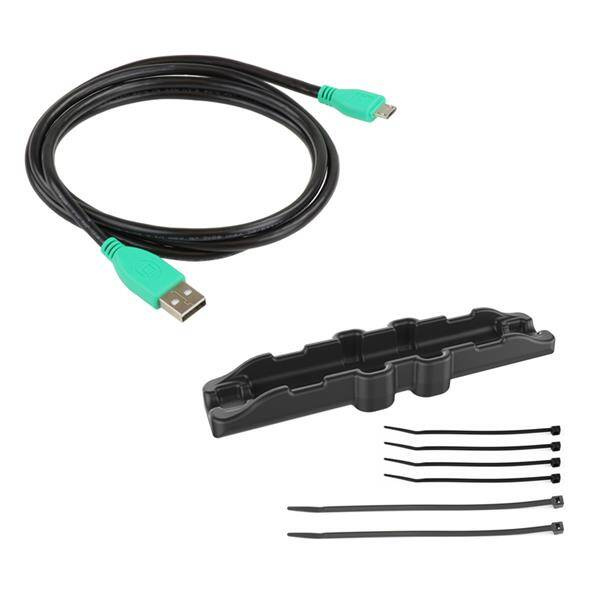 Монтажное оборудование|(4) Машинные винты #8-32 x 5/8"|(4) Гайки Nylock #8-32|(1) Настоящий прямой кабель USB 2.0 GDS|(1) Дополнительный корпус кабельного зажима|(4) Большие кабельные стяжки|(6) Малые кабельные стяжки