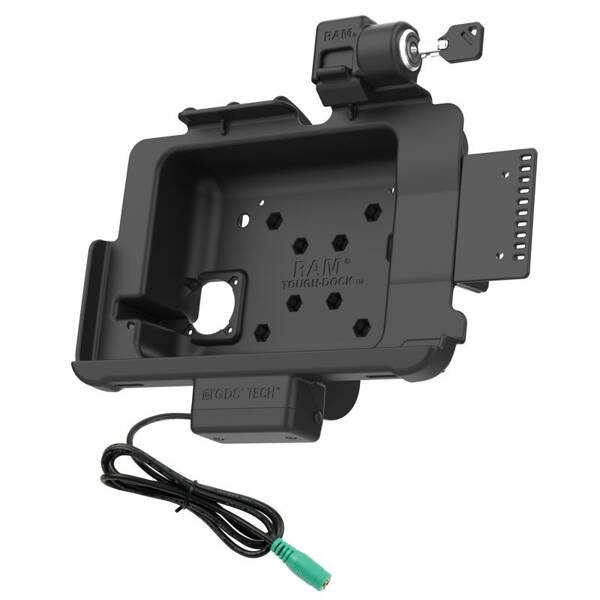 - RAM® Tough-Dock™ идеально фиксирует 10-дюймовые корпоративные планшеты Zebra ET40 и ET45 благодаря прочной раме; в комплект входит набор ключей для блокировки; испытание на удар и вибрацию по стандарту MIL-STD 810G