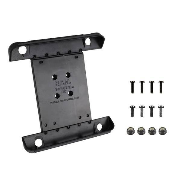 Подпружиненный быстросъемный держатель RAM Tab-Tite обеспечивает надежную фиксацию и легкий доступ к установленному планшету. Подпружиненная конструкция позволяет легко вставлять и извлекать планшет, сохраняя при этом его безопасность в различных приложениях. Специальные торцевые чашки предназначены для оптимизации функциональности вашего планшета, обеспечивая доступ ко всем кнопкам, портам и функциям планшета. В комплект входит набор из четырех гаек и болтов для крепления держателя к любым компонентам оперативной памяти, имеющим универсальную схему отверстий AMPS. Для бездорожья и использования в открытой кабине мы рекомендуем использовать трос, который поможет закрепить ваше устройство. Держатель RAM Tab-Tite совместим с любым планшетом указанных размеров. БрендСимволRAM-HOL-TAB3UКод производителя793442931437СерияВес изделия254 g249 gОборудование включеноМонтажные принадлежности|(4) Машинные винты #8-32 x 5/8"|(4) Машинные винты #8-32 x 1/2"|(4) Контргайки #8-32Размеры рукояткиДиапазон высоты: 8,5" - 11,125"| Диапазон ширины: 6.38" - 7,75"|Диапазон глубины: .13" - .56"Схема отверстийaMPS с 4 отверстиями: 1,181" x 1,496"AMPS 4 отверстияМатериалыВысокопрочный композитТип упаковкиПластиковый пакетТип устройства или аксессуараПланшетКомпонентыRAM-HOL-ACURAM-HOL-TAB3-CUPSUСовместимостьASUS MeMO Pad FHD 10ASUS Transformer PadApple iPad (1. поколения)Apple iPad (2. поколения)Apple iPad (3. поколения)Apple iPad (4. поколения)Apple iPad Air 4Apple iPad Air 5Apple iPad Pro 11"Apple iPad Pro 11" (2020)Apple iPad Pro 11" (2021)Dell Venue 10 7000Dell Venue 11 Pro 7000HP ElitePad 900HP ElitePad 900 G1HP Pro 610Lenovo S6000Lenovo Tab A10Lenovo ThinkPad 10Планшет Lenovo Yoga Tablet 10Планшет Lenovo Yoga Tablet 10 HD+Планшет Lenovo Yoga Tablet 2 (10 дюймов)Характеристика товараПодпружиненный держатель фиксирует iPad (1., 2., 3. i 4. поколение) без чехла и не только; сменные наконечники позволяют изменять держатель при обновлении устройствСовместим с круглыми шариковыми основаниями RAM® размеров B и C для крепления рычага с двойным гнездом; технология шариков и гнезд обеспечивает практически неограниченную регулировкуИзготовлен из прочных композитов, обеспечивающих долговечность и надежность в самых сложных условиях.Backed by a lifetime warranty - Рекомендуемые продукты