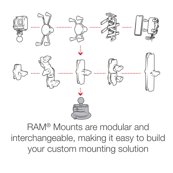 - Совместим с алмазными шариковыми основаниями RAM® Mounts; технология шариков и гнезд обеспечивает практически неограниченную регулировку