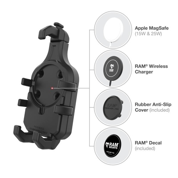 RAM Quick-Grip Pro Phone Mount with Twist-Lock Suction Cup - Medium (RAM-B-166-PD5U) идеально подходит для лобовых стекол автомобилей и представляет собой следующую эволюцию серии RAM Quick-Grip. Держатель телефона имеет новый, элегантный дизайн и интегрированные резиновые боковые ручки, обеспечивающие надежную, не скользящую фиксацию телефона. В нем также имеется встроенное углубление для шайбы Apple MagSafe, позволяющее превратить держатель телефона в беспроводное зарядное устройство. Не хотите заряжаться? Нет проблем! Входящая в комплект противоскользящая крышка обеспечивает плотное прилегание, когда шайба Apple MagSafe не установлена. RAM Quick-Grip Pro имеет подпружиненную конструкцию, которая позволяет легко вставлять и вынимать телефон одной рукой. Регулируемые боковые рычаги обеспечивают надежную фиксацию телефона в держателе, не блокируя порты и кнопки. В комплект входит основание с присоской RAM Twist-Lock диаметром 3,3 дюйма, которое легко устанавливается на любые непористые поверхности. RAM рекомендует устанавливать прилагаемую привязь для устройства, если этот держатель используется в автомобиле с открытой кабиной. При определении габаритов важно проверить размеры вашего портативного устройства вместе с чехлом, футляром или кожей. БрендСимволRAM-B-166-PD5UКод производителя793442026584Оборудование включеноAssembly HardwareРазмеры рукояткиHeight Range: 5.5" - 7.75"|Width Range: 2.625" - 3.75"|Max Depth: .67"Размер всасыванияДиаметр 3,3"Длина от розетки до розетки3"Размер шараРазмер B (1")ЕмкостьСтандартное использование: 907,18 грамм|Твердое использование: 453,59 граммМатериалыАлюминий, морской классВысокопрочный композитТип упаковкиПластиковый пакетКомпонентыRAM-B-166URAM-HOL-PD5UСовместимостьApple iPhone 6s PlusApple iPhone 8 PlusApple iPhone XApple iPhone XrApple iPhone XsApple iPhone Xs MaxApple iPhone 11Apple iPhone 11 ProApple iPhone 11 Pro MaxApple iPhone 12Apple iPhone 12 ProApple iPhone 12 Pro MaxApple iPhone 13Apple iPhone 13 ProApple iPhone 13 Pro MaxApple iPhone 14Apple iPhone 14 PlusApple iPhone 14 ProApple iPhone 14 Pro MaxApple iPhone 15Apple iPhone 15 PlusApple iPhone 15 ProApple iPhone 15 Pro MaxApple iPhone 16Apple iPhone 16 PlusApple iPhone 16 ProApple iPhone 16 Pro MaxBlackberry Evolve XBlackview BV9900Blackview BV9900 ProGoogle Pixel 2Google Pixel 2 XLGoogle Pixel 3Google Pixel 3 XLGoogle Pixel 3aGoogle Pixel 3a XLGoogle Pixel 4Google Pixel 4 XLGoogle Pixel 4aGoogle Pixel 5Google Pixel 6Google Pixel 6 ProGoogle Pixel 7Google Pixel 7 ProGoogle Pixel 8Google Pixel 8 ProHTC U11Huawei Mate 20 ProHuawei Mate 20 XHuawei P30 ProLG Aristo 2LG Fiesta 2 LTELG Fiesta LTELG G6LG G6+LG G7 ThinQLG G8 ThinQLG G8S ThinQLG HarmonyLG K20LG K20 PlusLG Q6LG Stylo 3 Plus TitanLG Stylo 4LG V30LG V35 ThinQLG V40 ThinQLG V50 ThinQLG X ventureLG Зона 4Motorola moto e4Motorola moto e4 plusMotorola moto g5s plusMotorola moto g6Motorola moto g7 powerMotorola moto X4Motorola moto z2Motorola moto z2 playMotorola moto z3Nokia 2Nokia 3Nokia 5Nokia 8Nokia 7 plusNokia 8 SiroccoNokia 9 PureViewOnePlus 7OnePlus 6TOnePlus 7 ProOnePlus 7TOnePlus 7T ProPanasonic Eluga X1 ProRazer Phone 2Samsung Galaxy A10Samsung Galaxy A10eSamsung Galaxy A10sSamsung Galaxy A11Samsung Galaxy A15Samsung Galaxy A20Samsung Galaxy A20eSamsung Galaxy A30Samsung Galaxy A40Samsung Galaxy A50Samsung Galaxy A50sSamsung Galaxy A6Samsung Galaxy A6+Samsung Galaxy A7Samsung Galaxy A70Samsung Galaxy A8Samsung Galaxy A80Samsung Galaxy A9 (2016)Samsung Galaxy A90 5GSamsung Galaxy J2 (2016)Samsung Galaxy J5Samsung Galaxy J7 (2017)Samsung Galaxy J7 (2018)Samsung Galaxy J7 Prime 2Samsung Galaxy Note 10Samsung Galaxy Note 10 PlusSamsung Galaxy Note 8Samsung Galaxy Note 9Samsung Galaxy Note Fan EditionSamsung Galaxy Note20Samsung Galaxy Note20 UltraSamsung Galaxy S10Samsung Galaxy S10 5GSamsung Galaxy S10+Samsung Galaxy S10eSamsung Galaxy S20Samsung Galaxy S20 FE 5GSamsung Galaxy S20 Ultra 5GSamsung Galaxy S20+Samsung Galaxy S21 5GSamsung Galaxy S21 Ultra 5GSamsung Galaxy S21+ 5GSamsung Galaxy S22 5GSamsung Galaxy S22 Ultra 5GSamsung Galaxy S22+ 5GSamsung Galaxy S23Samsung Galaxy S23 UltraSamsung Galaxy S23+Samsung Galaxy S24Samsung Galaxy S24 UltraSamsung Galaxy S24+Samsung Galaxy S8Samsung Galaxy S8 ActiveSamsung Galaxy S8+Samsung Galaxy S9Samsung Galaxy S9+Samsung Galaxy XCover 4Samsung Galaxy XCover 5Чехол Samsung Galaxy XCover FieldProSamsung Galaxy XCover ProSamsung Galaxy XCover6 ProSamsung Galaxy XCover7Социальный мобильный Rhino C6Sony Xperia 1 VSony Xperia 10 VSony Xperia C4Sony Xperia L1Sony Xperia L2Sony Xperia XПроизводительность Sony Xperia XSony Xperia XASony Xperia XA UltraSony Xperia XA1Sony Xperia XA1 PlusSony Xperia XA1 UltraSony Xperia XA2Sony Xperia XA2 UltraSony Xp
