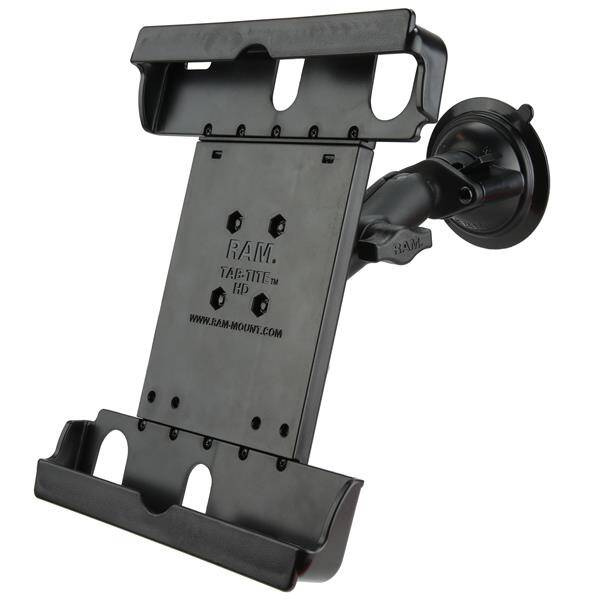 - В комплект входит основание с присоской RAM® Twist-Lock™ для установки на ветровое стекло и другие непористые поверхности, а также кронштейн с B-образным пазом.
