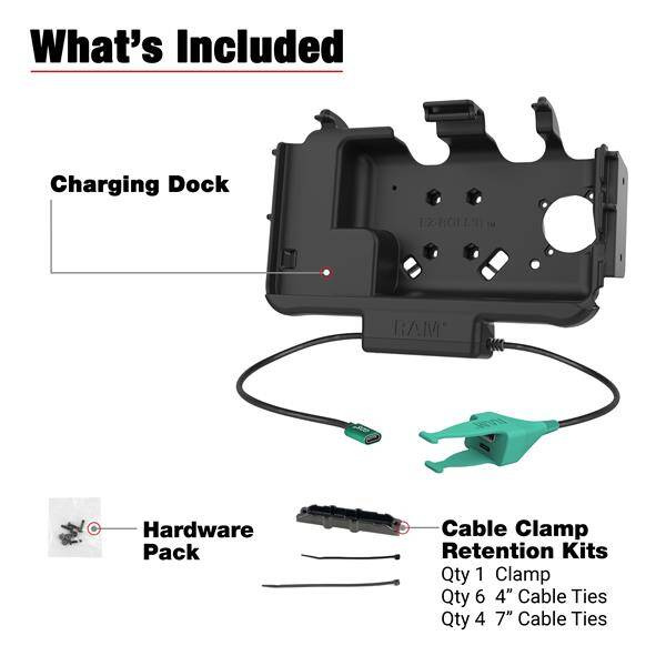 - Док-станция RAM® EZ-Roll'r™ с формой корпуса, разработанная специально для Samsung Galaxy Tab Active5 и Tab Active3; обеспечивает зарядку с помощью встроенного штыревого соединения и кабеля USB-C