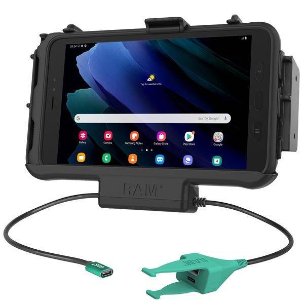 - Док-станция с питанием RAM® EZ-Roll'r™ разработана специально для планшета Samsung Galaxy Tab Active3; обеспечивает зарядку через встроенный штыревой разъем и кабель USB-C.