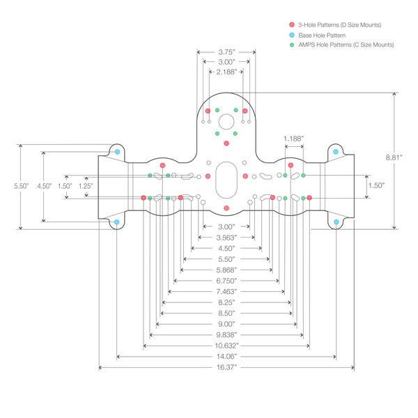 - Includes AMPS and tri-hole patterns for RAM® D size bases