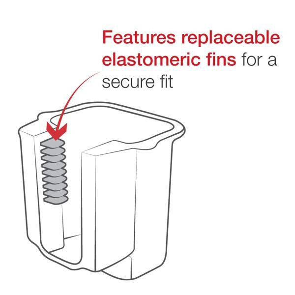 - Универсальный держатель для сканирующего пистолета имеет сменные эластомерные ребра для надежной фиксации.