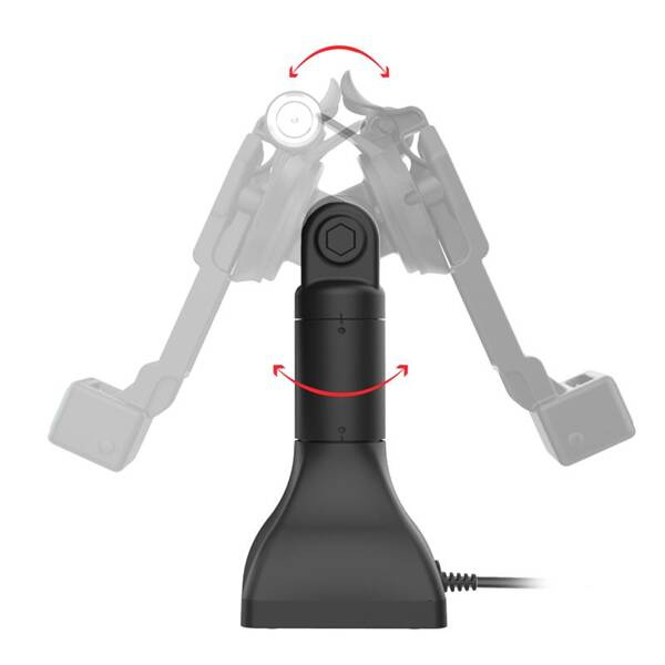 - Dock swivels 180 degrees and enables connected devices to tilt 180 degrees