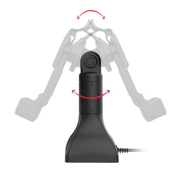 - Dock swivels 180 degrees and enables connected devices to tilt 180 degrees