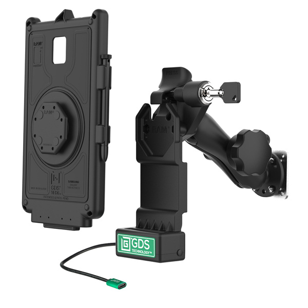 - Bundle includes the GDS® Uni-Conn™ right locking dock, Uni-Conn™ adapter, IntelliSkin® Next Gen for Samsung Tab Active5, C size double ball mount with medium arm, backing plate adapter, and cable clamp