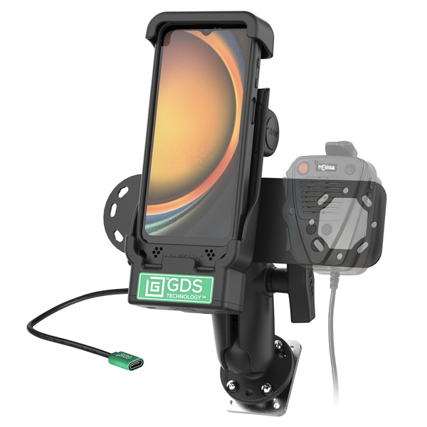 • Bundle includes GDS® Dock™, IntelliSkin® for the Samsung XCover7 Pro & 6 Pro, microphone bracket, two hardwire chargers, SAE splitter, and double ball mount with backing plate