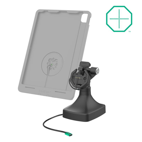 - Key-locking, free-standing Kiosk dock for devices enclosed in an IntelliSkin® Thin-Case™ with Rear Pogo Pads