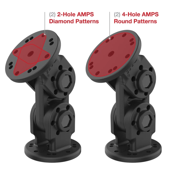 - Each end features two 2-hole AMPS and two 4-hole AMPS patterns; secure your device to one end and the other to your preferred surface