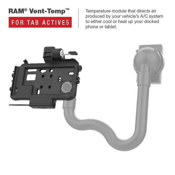 - Док-станция с питанием в виде ключа, разработанная специально для Samsung Galaxy Tab Active5 и Tab Active3, упакованных в защитный чехол Samsung OEM или RAM® Skin™