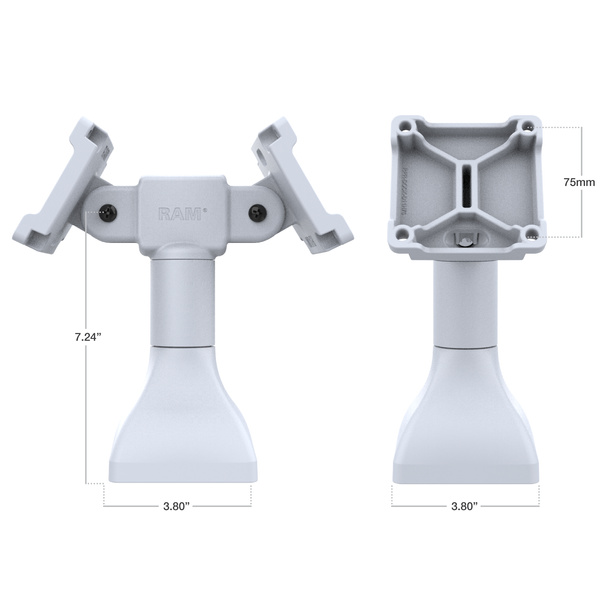 RAM 7" Pedestal Mount with Dual 75mm VESA Adapters - Gray (RAP-D11H2-7-V75-GRY) обеспечивает прочный и рациональный способ установки двух дисплеев или устройств друг за другом на одном пьедестале. Каждая головка оснащена 75-миллиметровой пластиной VESA с интегрированными вырезами для прокладки кабелей, что позволяет аккуратно проложить кабели питания и передачи данных через пьедестал и основание, обеспечивая чистое и профессиональное рабочее пространство. Благодаря регулировке угла наклона на 180 на каждой головке пользователи могут легко достичь оптимальных углов обзора, будь то общие рабочие места, панели управления или мониторинг автопарка. Сверлящее основание обеспечивает надежную, фиксированную установку, идеальную для мест с высокой проходимостью или полупостоянных установок. Прочное, адаптируемое и точно выверенное, это решение с двумя креплениями обеспечивает функциональность и визуальную организацию любого рабочего пространства. Выполненное в светло-сером цвете, крепление легко вписывается в чистую, современную и эстетичную обстановку, где важны тонкость и профессиональный внешний вид. БрендСимволRAP-D11H2-7-V75-GRYКод производителя793442032608НовыйДаОборудование включеноМонтажное оборудованиеРазмеры изделияHeight from Base to Tilt Bolt: 7.24"|Base Width: 3.8"|Base Depth: 3.8"Схема отверстий75 x 75 мм VESAМатериалыВысокопрочный композитТип упаковкиКоробкаХарактеристика товараMount two devices or monitors opposite each other with dual 75mm VESA HeadsRoute cables through the pedestal for a clean and organized look180° tilt range, adjust each head for ideal viewing or operational positioning7-inch pedestal provides a sturdy structure for industrial and commercial useBacked by a lifetime warranty - Рекомендуемые продукты