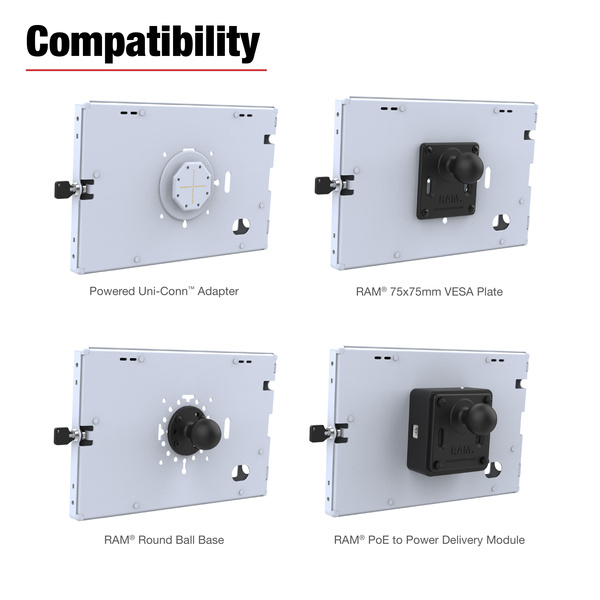 Secure to RAM® ball mounts with VESA and AMPS pattern; or flush mount
