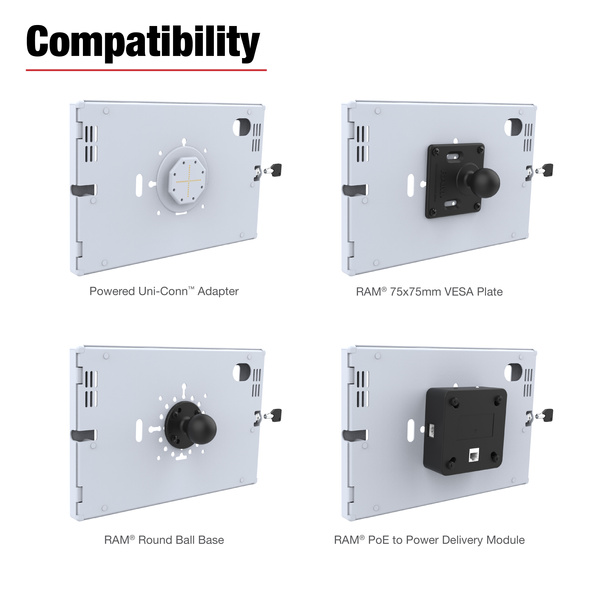 Secure to RAM® ball mounts with VESA and AMPS pattern; or flush mount