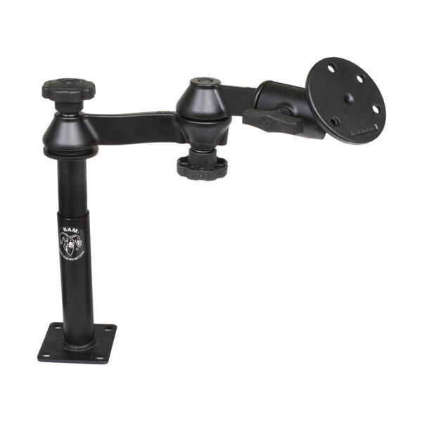 RAM-VP-SW1-47-240 состоит из нижней телестойки с внутренней резьбой диаметром 7 дюймов, верхней телестойки с наружной резьбой диаметром 4 дюйма, двойного поворотного рычага и круглого основания диаметром 3,68 дюйма. Нижнюю телестойку с внутренней резьбой можно прикрепить ко всем автомобилям RAM. основания, не содержащие приваренной телестойки с внутренней резьбой. Высоту всех телестойк можно легко отрегулировать, повернув ручку в верхней части стойки. После затягивания ручки телестойка становится. жесткая опора для подключения устройств или подставок. Двойной поворотный рычаг позволяет поворачивать и наклонять угол обзора подключенного электронного устройства при установке на автомобильное крепление RAM. Вращающийся поворотный рычаг обеспечивает еще больше положений для просмотра установленного электронного устройства. при этом все прочно удерживается на месте. Длина двойного поворотного рычага составляет 12 дюймов. Круглое основание диаметром 3,68 дюйма содержит предварительно просверленные отверстия для подключения к док-станциям с питанием от RAM Tough-Dock.