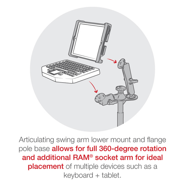 RAM® Tele-Pole™ с 12- и 18-дюймовыми опорами и двойным шаровым креплением