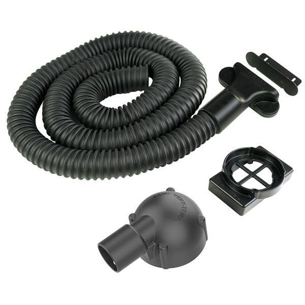 - Направляет холодный или горячий воздух из системы кондиционирования воздуха автомобиля на переднюю часть пристыкованного планшета с помощью гибкого шланга длиной 50 дюймов; шланг можно обрезать до нужной длины.